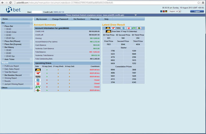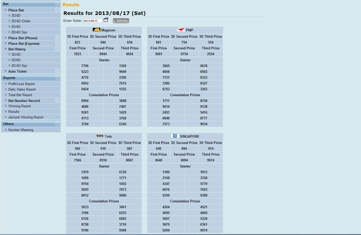 Online 4D betting, Magnum, Toto, Damacai (PMP), STC, Singapore, Sabah & Sarawak 4D